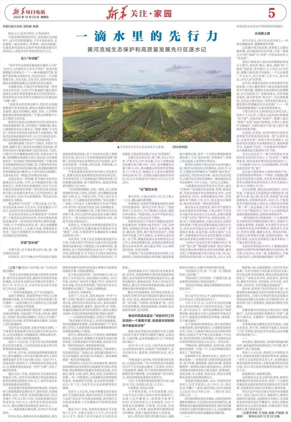 “我们将把学习贯彻党的二十大精神转化为推动先行区建设的强大动力,把提升人民群众获得感、幸福感、安全感作为治水兴水的根本出发点和落脚点,聚焦持久水安全、优质水资源、健康水生态、宜居水环境、先进水文化等重点关键,促进涉水服务一体化均等化,让民生水利惠及宁夏更多群众。”宁夏水利厅负责人说。