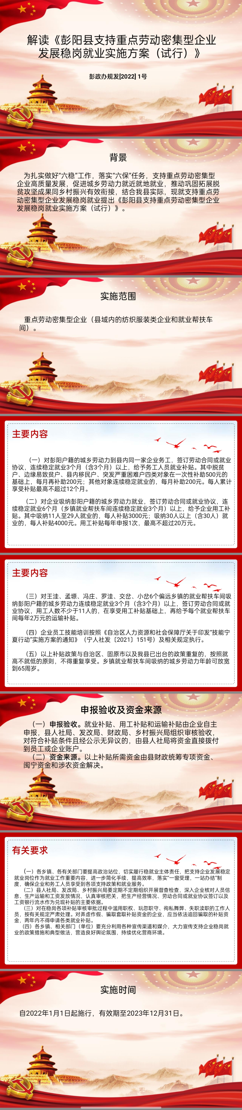 彭阳县人民政府办公室关于印发《彭阳县支持重点劳动密集型企业发展稳岗就业实施方案(试行)》的通知