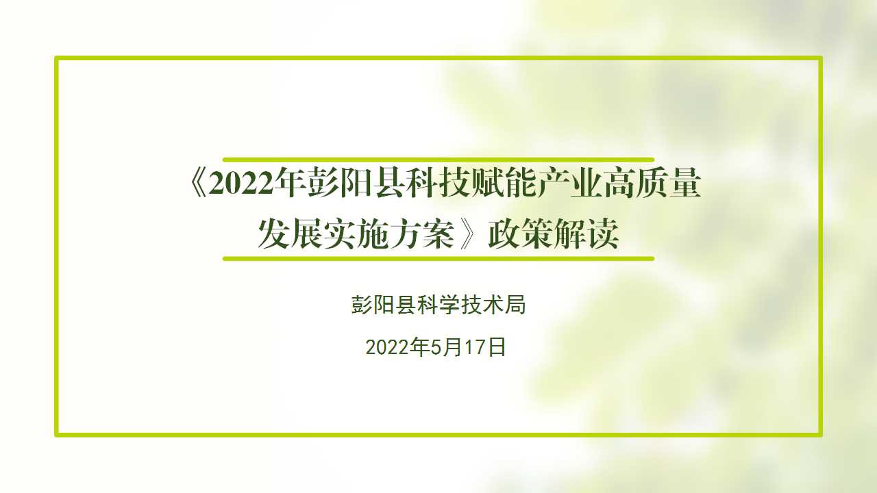 彭阳县人民政府办公室关于印发《2022年彭阳县科技赋能产业高质量发展实施方案》的通知
