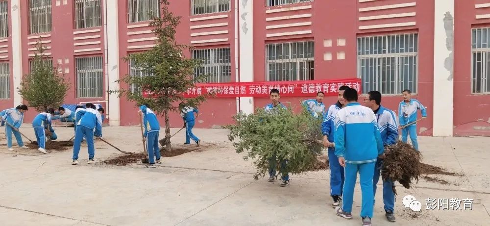 3月30日,彭阳县第二中学组织开展以“植树环保爱自然,劳动教育铸心间”为主题的道德教育实践活动。