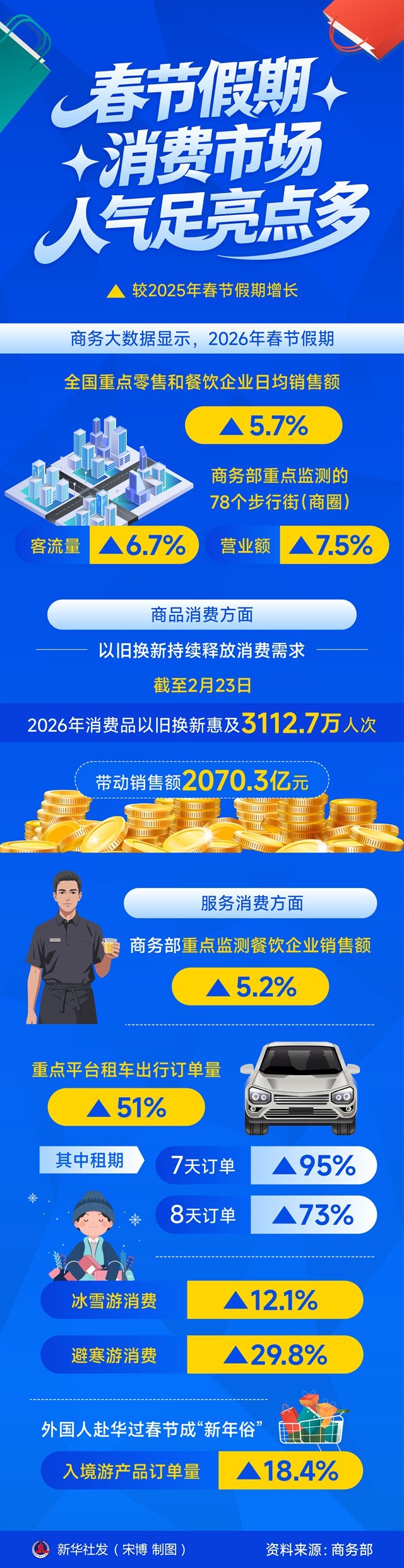 记者2月24日从商务部获悉,春节假期,各地商务部门深入组织开展“乐购新春”春节特别活动,加力实施消费品以旧换新、有奖发票等政策,持续释放假日消费潜力。