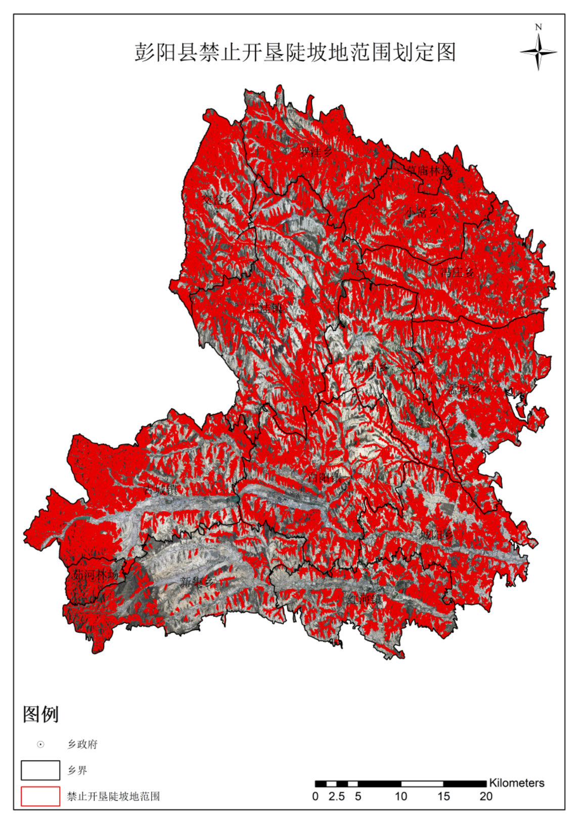 根据《中华人民共和国水土保持法》以及《宁夏回族自治区实施<中华人民共和国水土保持法>办法》的规定,结合彭阳县的实际情况,确定彭阳县禁垦坡度划分标准为:新集乡20°,其他乡镇15°。