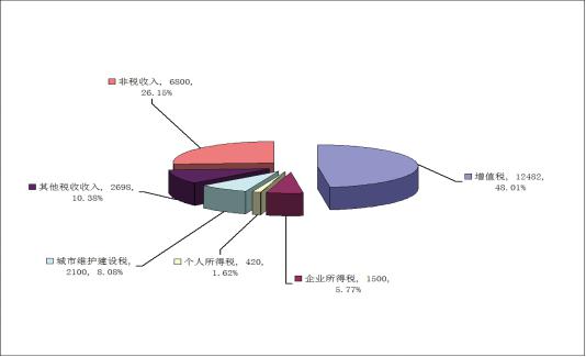 预计地方一般公共预算收入26000万元,同比增长8.33%,主要收入项目为:税收收入19200万元,非税收入6800万元;自治区财政补助134459万元;调入资金886万元,地方一般公共预算收入加上自治区财政补助、调入资金,总财力为161345万元。