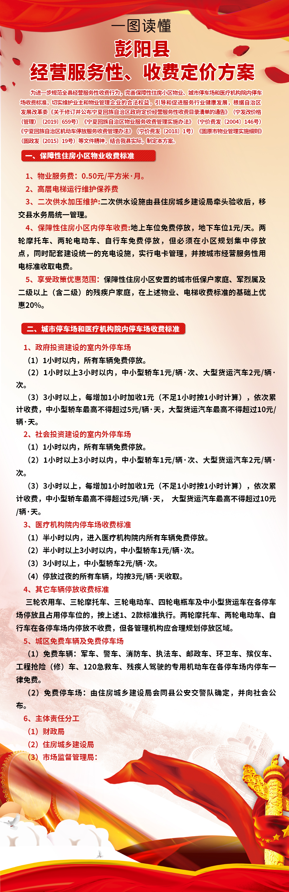 彭阳县人民政府关于印发《彭阳县经营服务性(保障性住房小区物业、城市停车场和医疗机构院内停车场)收费定价方案》的通知