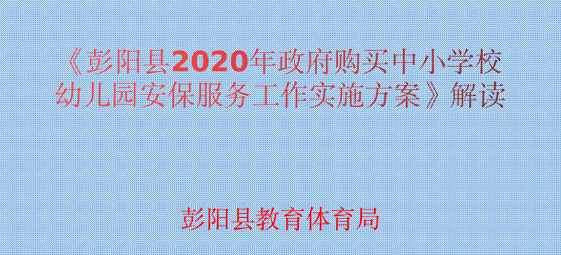 原文链接:彭阳县人民政府办公室关于印发《彭阳县2020年政府购买中小学幼儿园安保服务工作实施方案》的通知