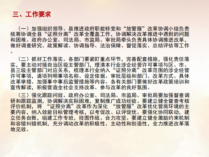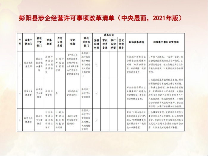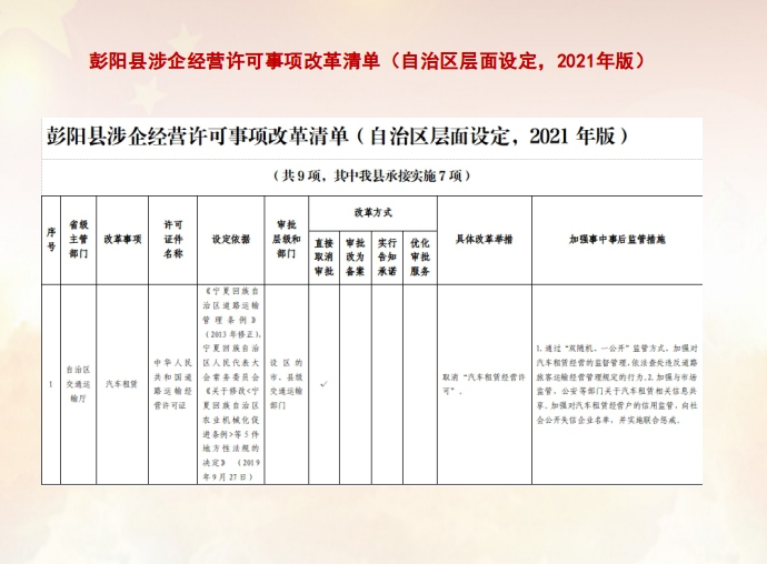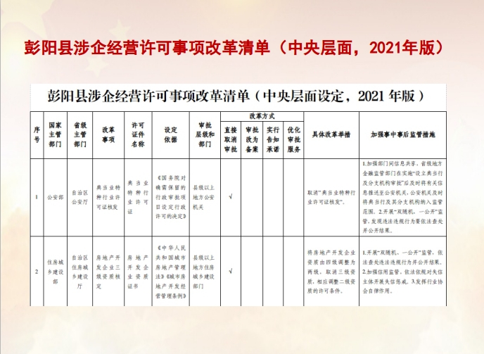 原文链接:彭阳县人民政府办公室关于印发《彭阳县深化“证照分离”改革进一步激发市场主体发展活力实施方案》的通知