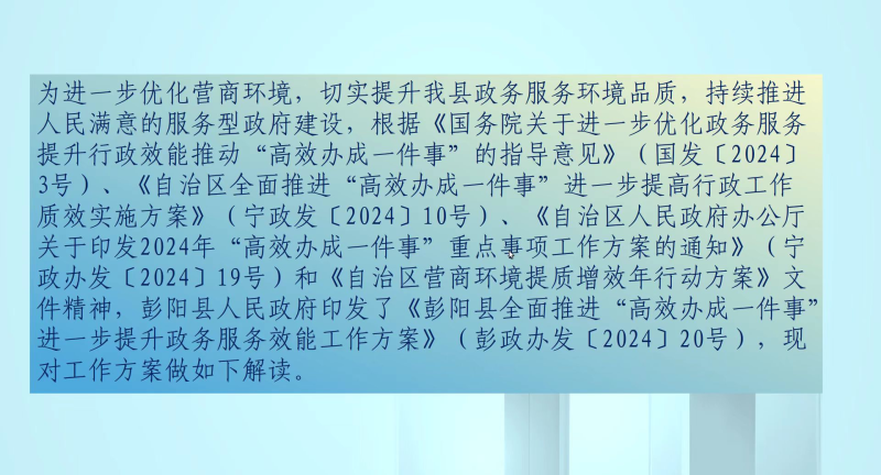 彭阳县人民政府办公室关于印发《彭阳县全面推进“高效办成一件事”进一步提升政务服务效能工作方案》的通知