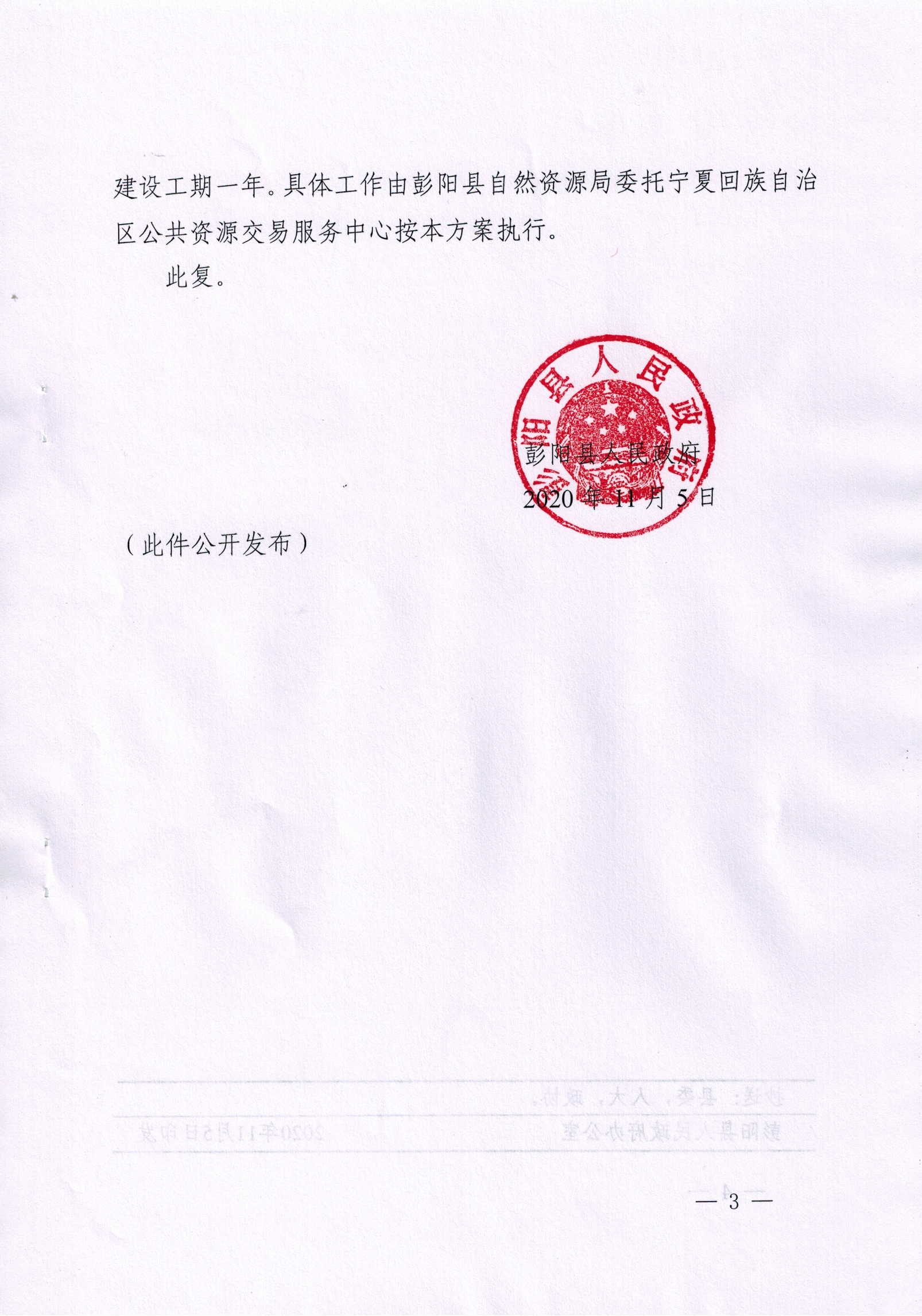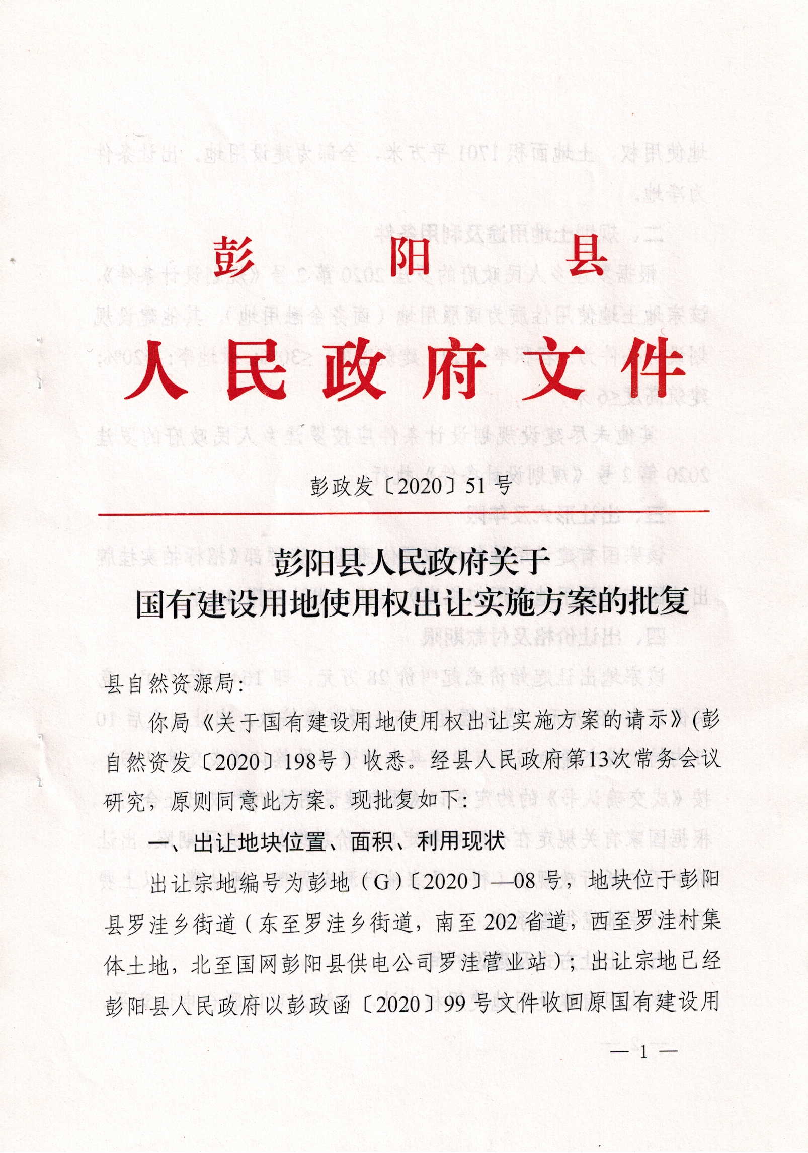 彭阳县人民政府关于国有建设用地使用权出让实施方案的批复(彭政发〔2020〕51号)