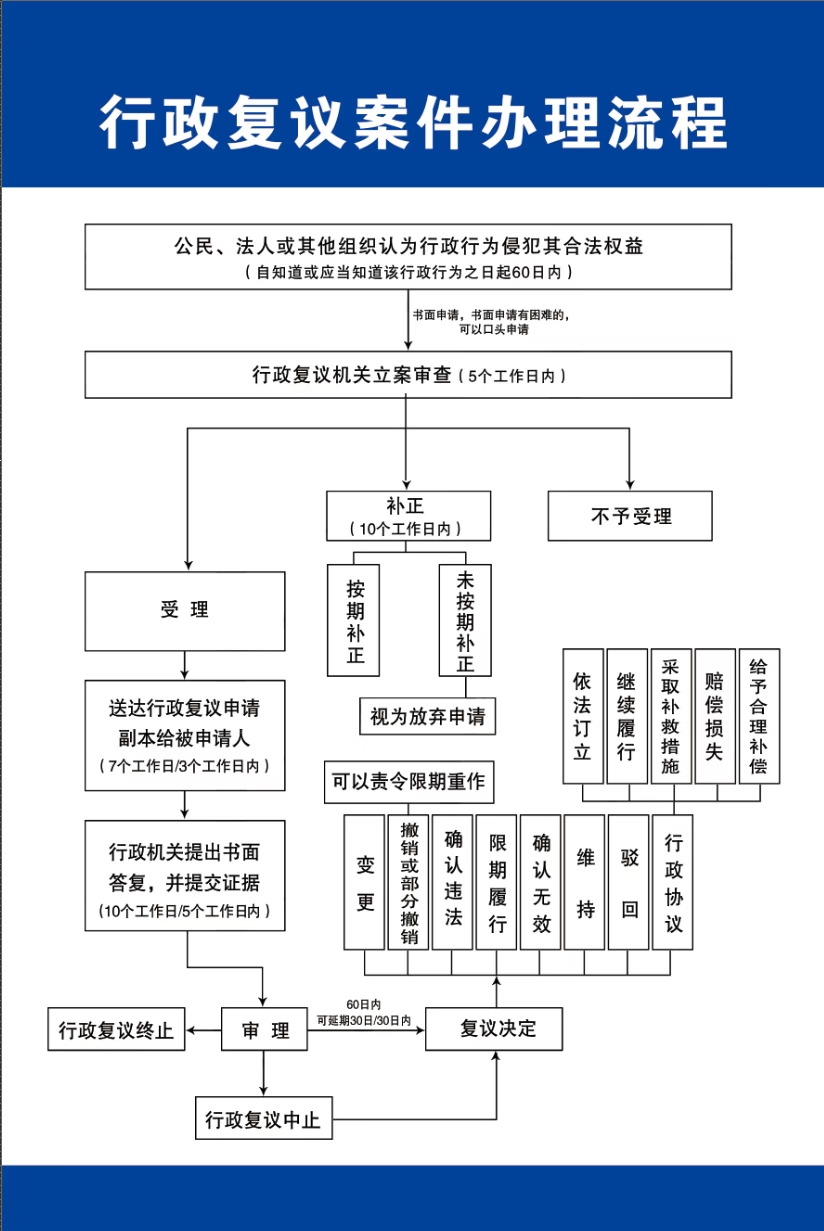 彭阳县司法局关于行政复议申请范围及受理条件、行政复议申请书(模板)、行政复议案件办理流程的公示