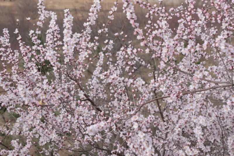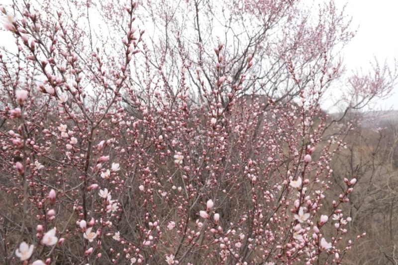 三月的彭阳阳光明媚,行走在彭阳的乡村公路上,放眼望去,公路两边、田间地畔,满山遍野粉红色的山花竞相争艳,花香袭人,绵延数公里的花海把山间村落装扮得绚丽多姿,勾画出一幅美丽的初春画卷。