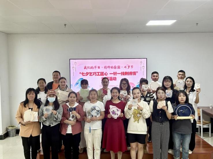 此次活动邀请了广大干部职工以及市级非遗传承人刘粉金老师,活动中,刘老师为大家讲解了七夕的节日起源、发展、文化内涵和传统习俗,加深了广大职工对传统节日的了解和认识。在穿针乞巧环节,刘老师为大家讲解荷包刺绣的方法,从最基础的穿针开始,边讲解边演示,不断传授技术要领,在体验过程中,大家对刺绣表现出了强烈的兴趣,经过两个多小时的手工制作,大家自豪地拿出自己的刺绣作品进行展示,活动 现场相互交流绣法经验,讨论热烈,气氛十分融洽。