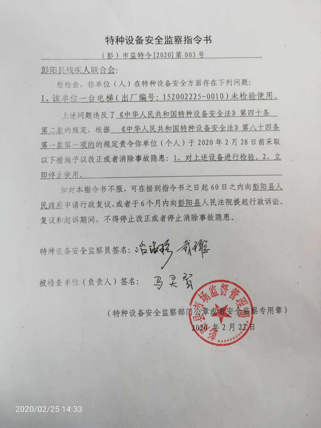 (彭)市监特令【2020】第003号