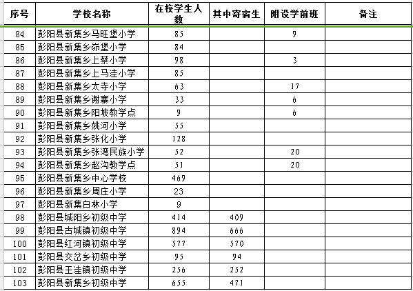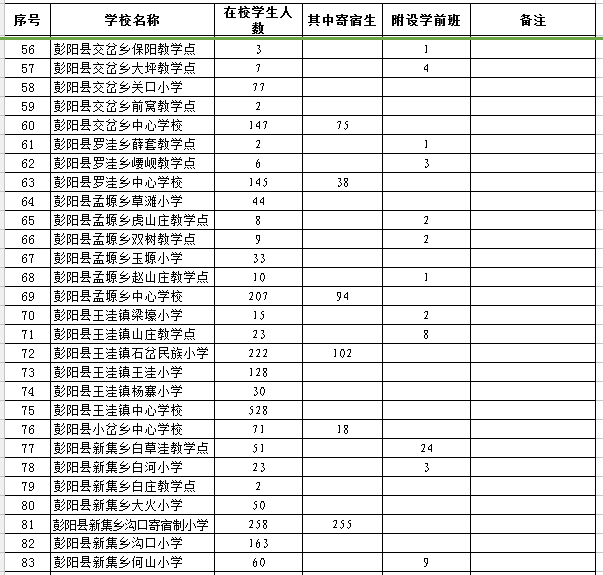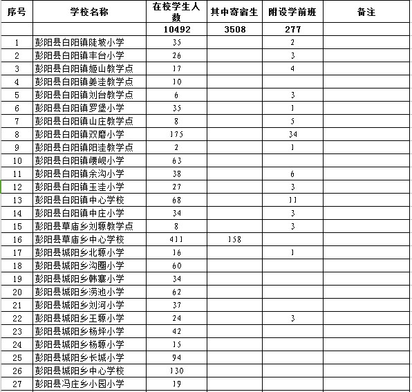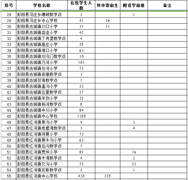 彭阳县2020年秋季学期农村义务教育学生营养改善计划学校及学生人数公示表