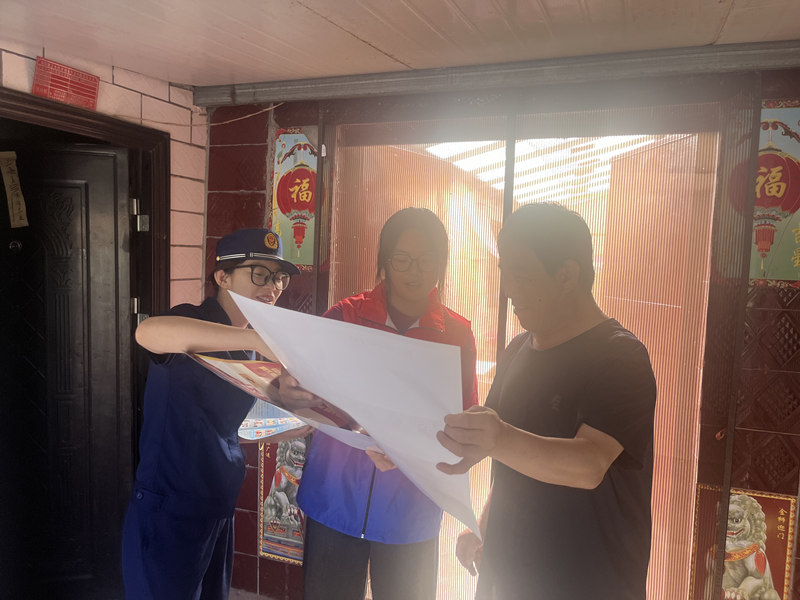 随后,大队宣传员携手大学生志愿者一同深入居民家中开展“面对面、点对点”的精准服务。他们细致检查居民家中的电气线路是否老化破损、燃气灶具及管道使用是否规范、厨房油烟管道是否定期清理、疏散通道和安全出口是否畅通无阻、易燃可燃杂物是否及时清理等情况。对于发现的隐患,如插线板超负荷使用、电动车电池违规存放充电、楼道堆放杂物等问题,宣传员当场向居民指出,详细说明其潜在危险,并提供了切实可行的整改建议和指导。